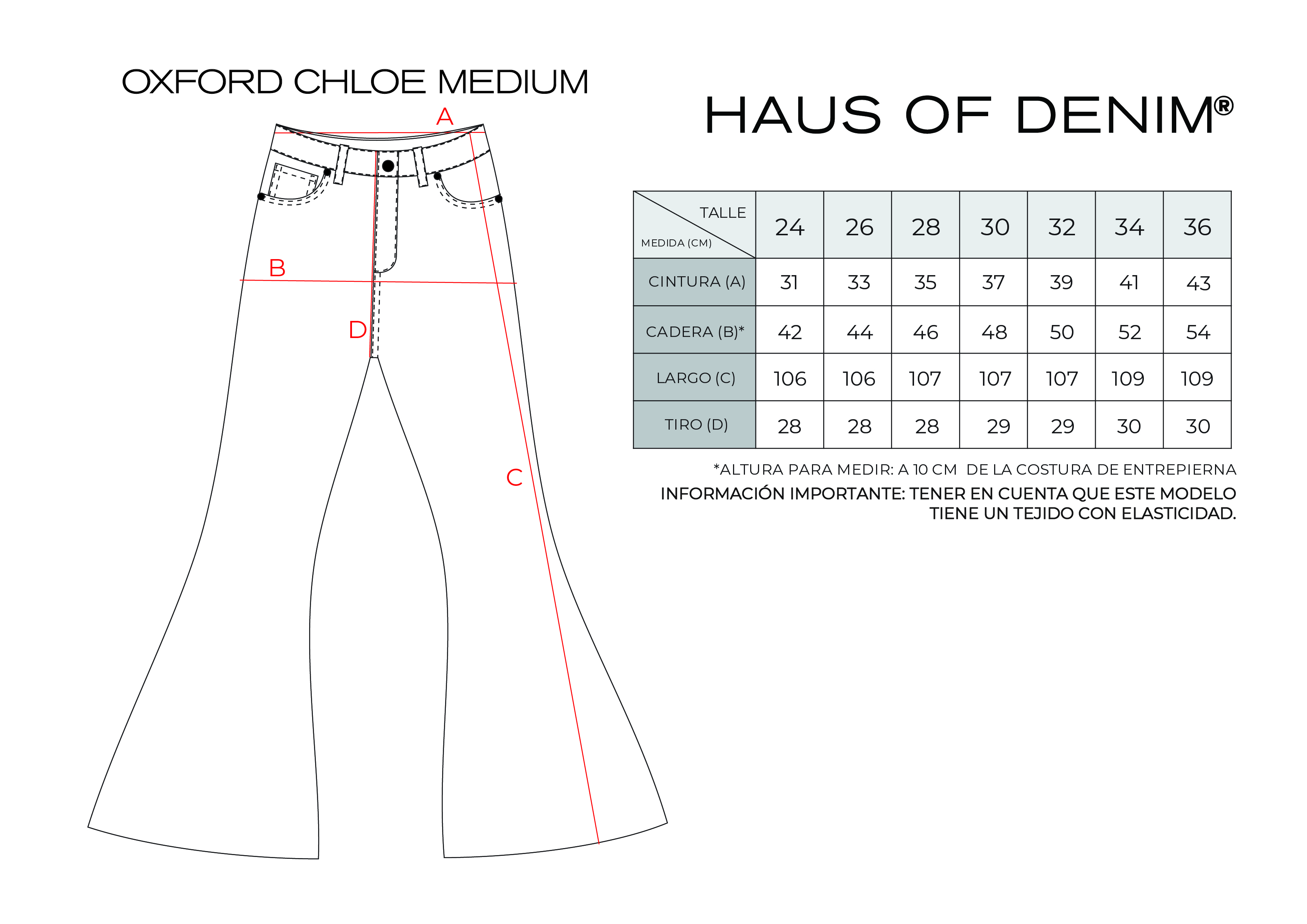 Jean oxford de tiro alto. En calce 5 bolsillos y tela sumamente suave. En un tono de denim celeste con destellos de luz y claridad.
