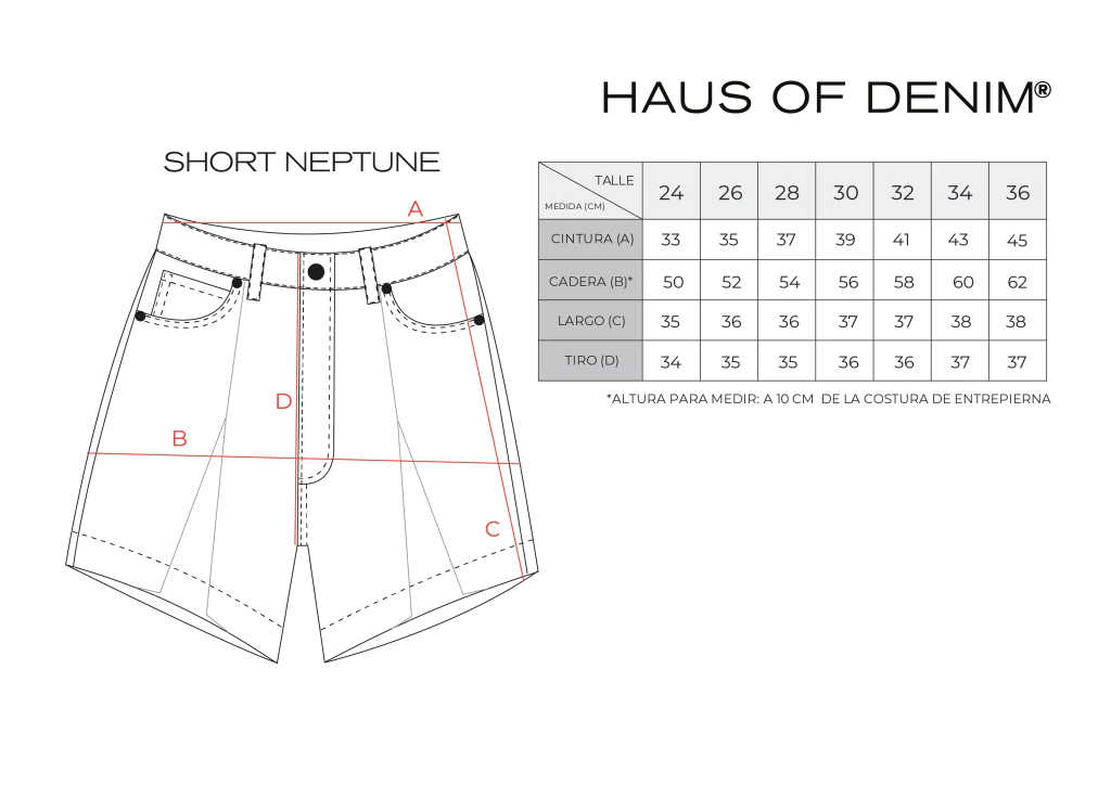 El largo de su entrepierna es oblicuo, haciéndose un poquito más corto hacia el lateral externo de la pierna.