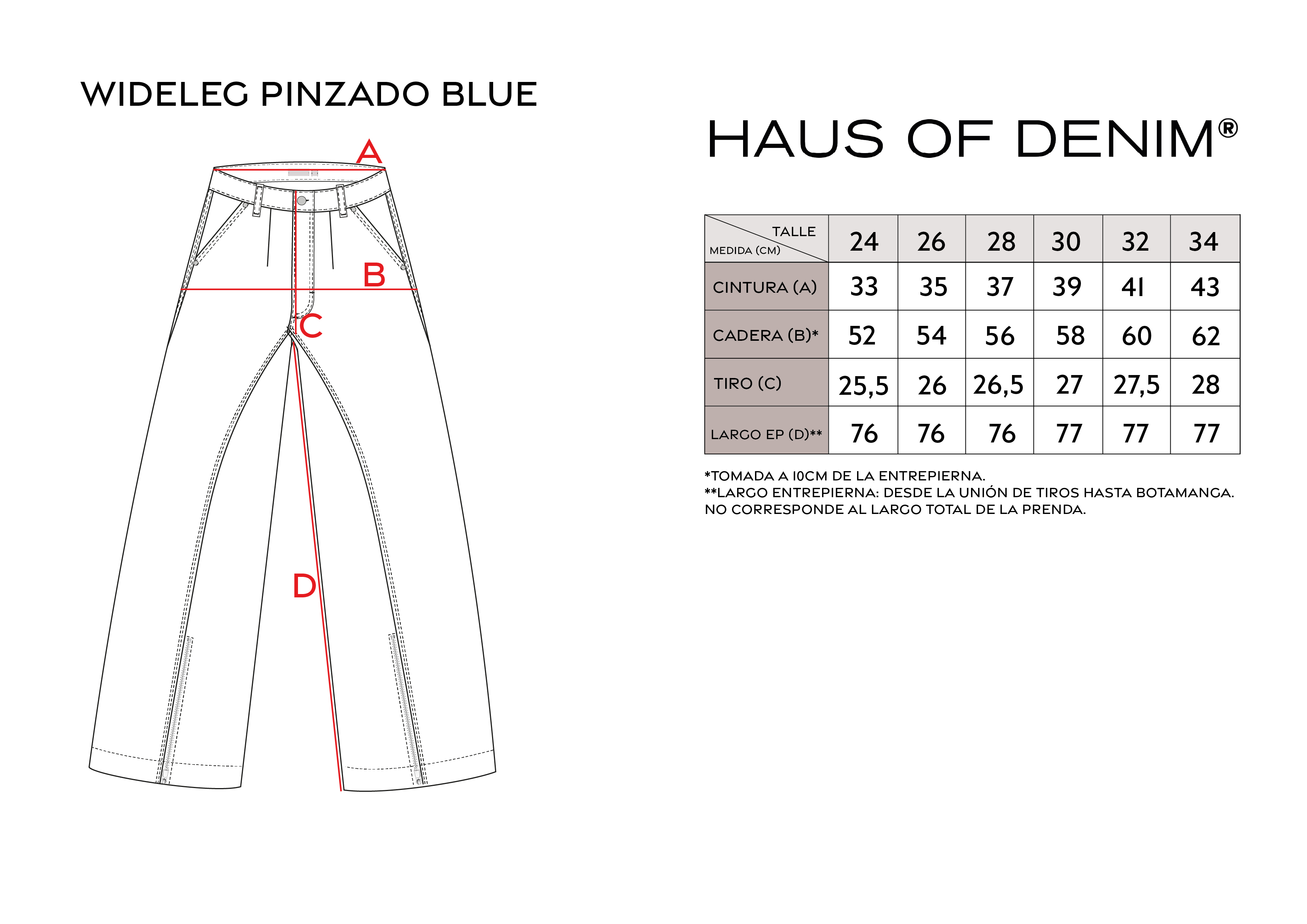 Calce: Tiro: largo Pierna: amplia y relajado Largo: para que apoye en el calzado Bota: amplia con cierre en frente.